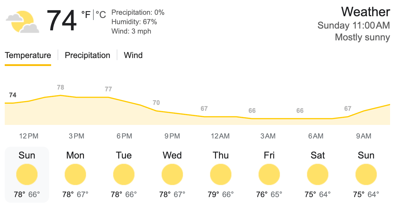 As of Sunday 08-10-2025 | (Source: Google Weather)