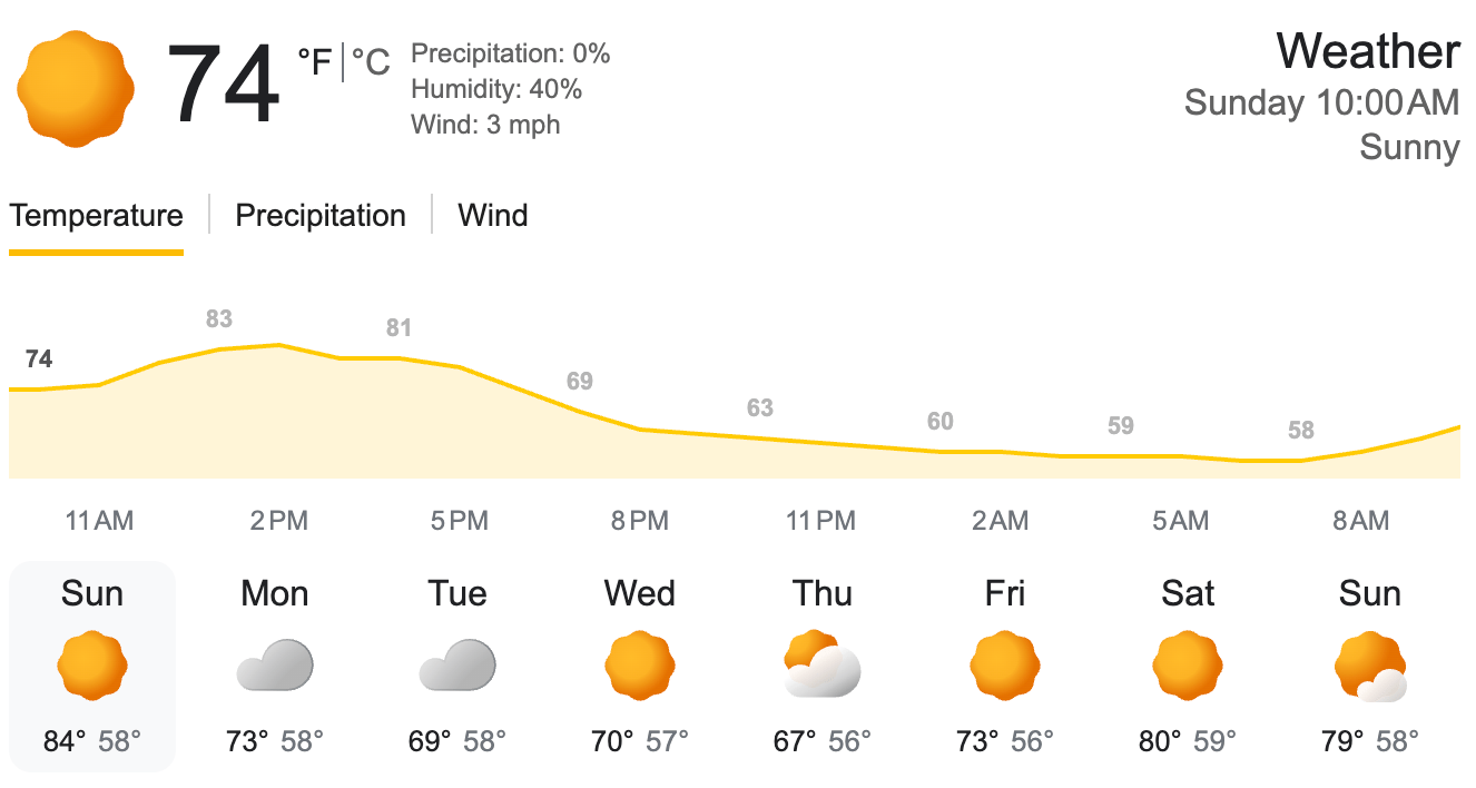 As of Sunday 03-29-2026 | (Source: Google Weather)