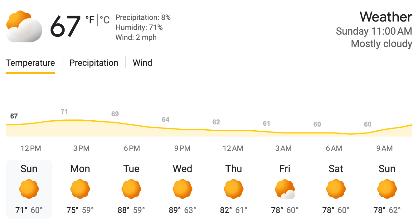 As of Sunday 10-26-2025 | (Source: Google Weather)