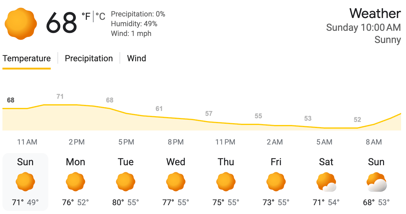 As of Sunday 12-07-2025 | (Source: Google Weather)