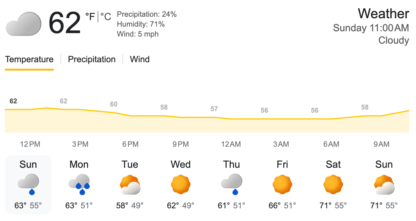 As of Sunday 11-16-2025 | (Source: Google Weather)