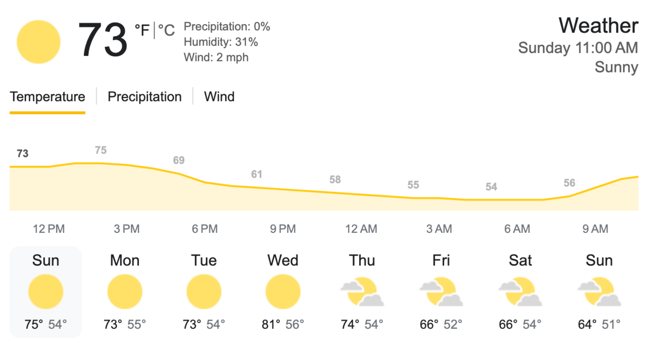 As of Sunday 02-23-2025 | (Source: Google Weather)