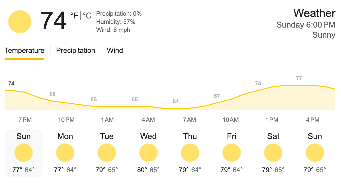 As of Sunday 07-27-2025 | (Source: Google Weather)
