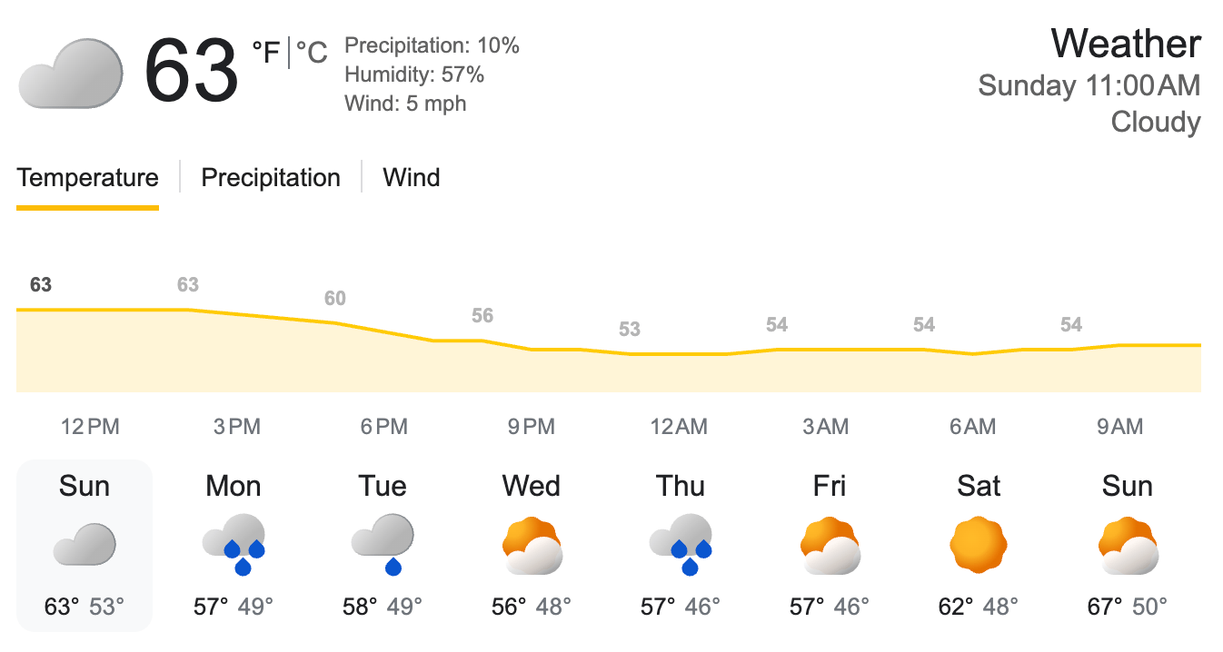 As of Sunday 02-15-2026 | (Source: Google Weather)
