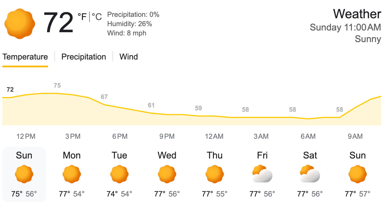 As of Sunday 01-11-2026 | (Source: Google Weather)