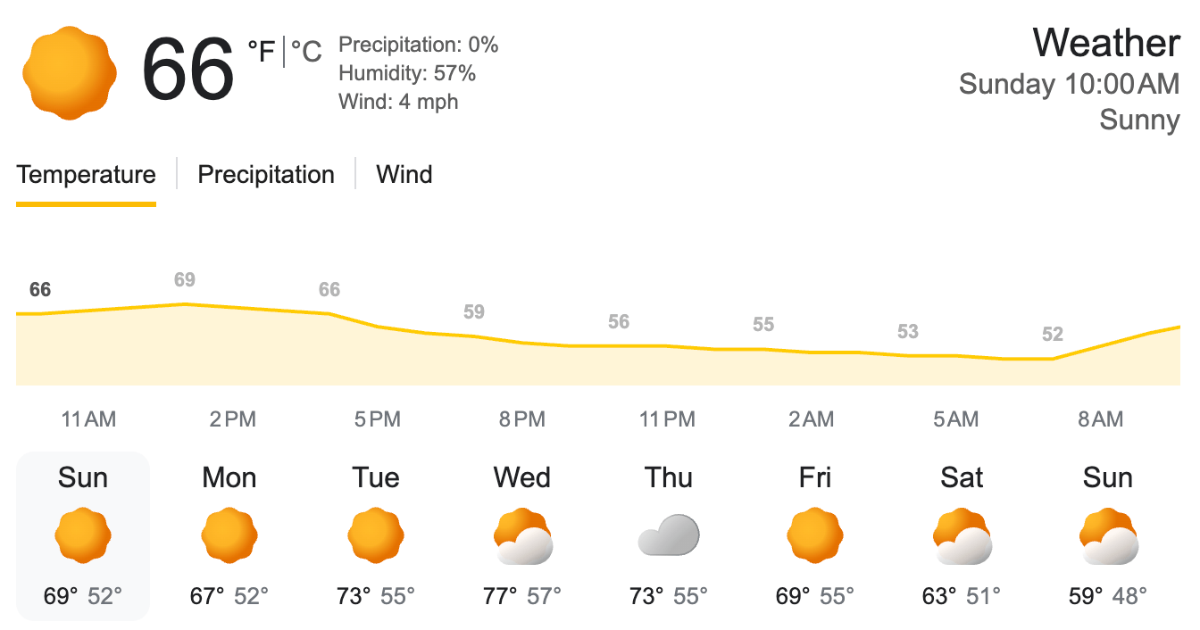 As of Sunday 11-23-2025 | (Source: Google Weather)